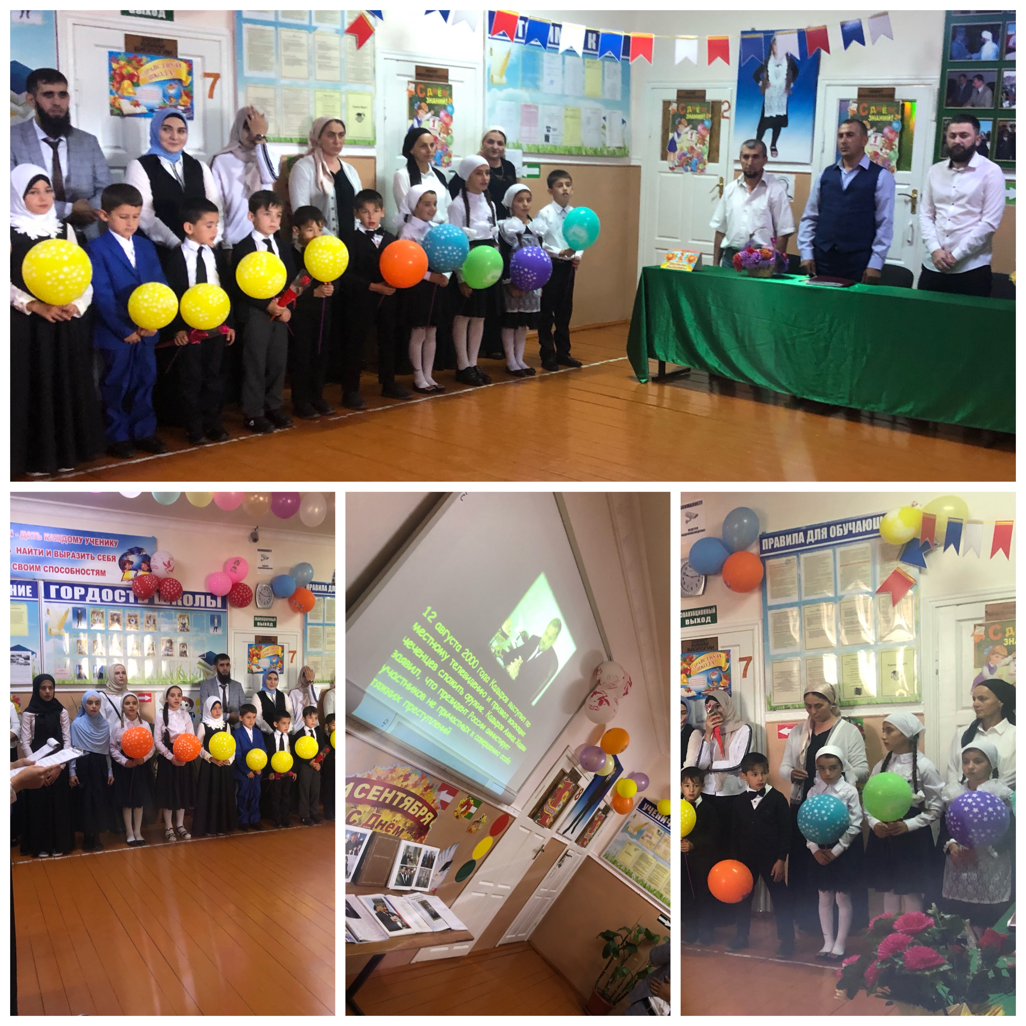 После окончания линейки классные руководители повели своих ребят на первый урок по теме: Урок Памяти, посвященный Первому Президенту ЧР, Герою России А.А. Кадырову.