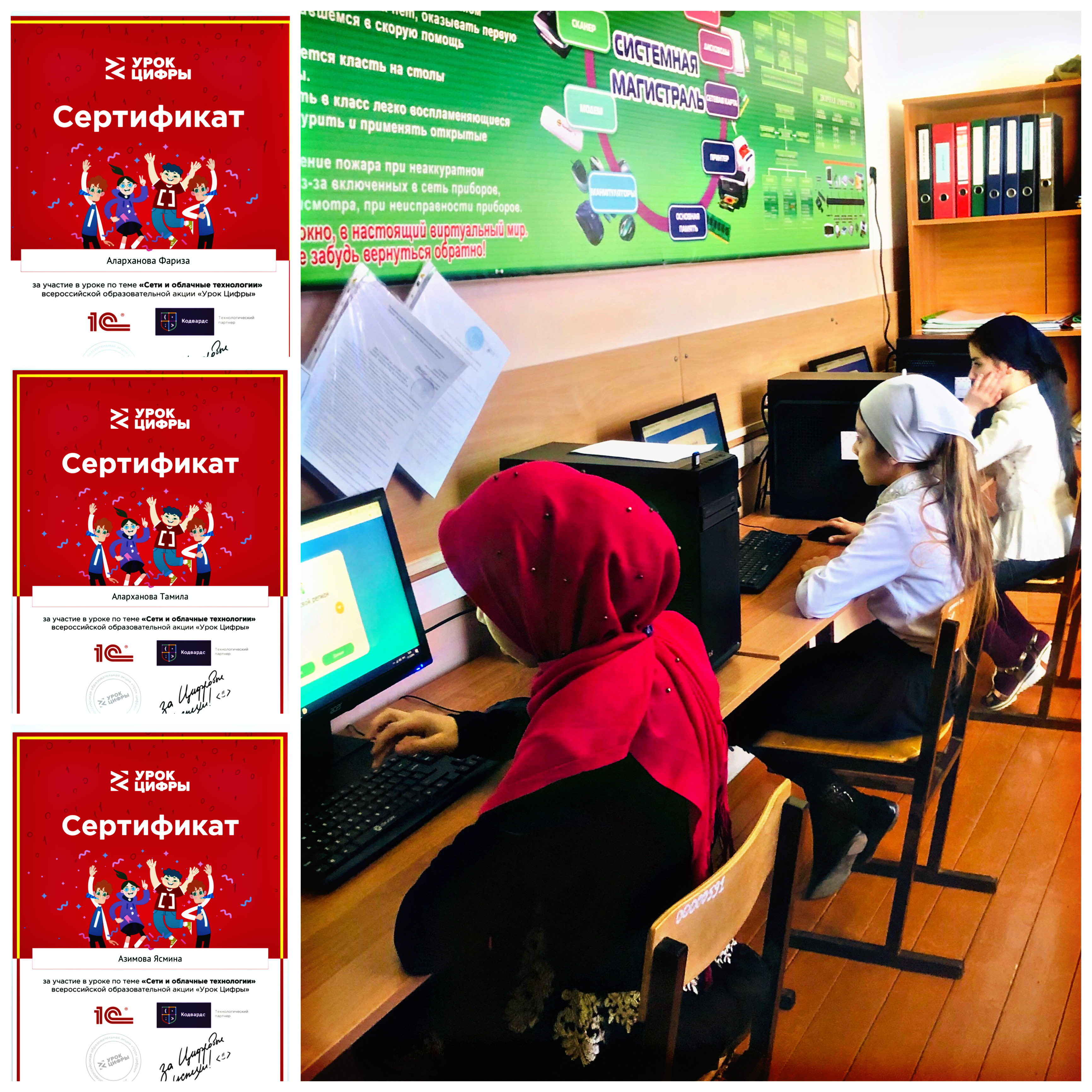 Учащиеся 5 класса приняли в нем участие. На уроке ребята узнали, что такое сеть, что входит в понятие облачные технологии и как они работают, что было до появления Интернета, как он развивался, в чём состоит магия облаков и как надёжно хранить собранные данные. Также познакомились с профессиями людей, которые работают с этими технологиями. За прохождение тренажера учащиеся получили сертификаты.