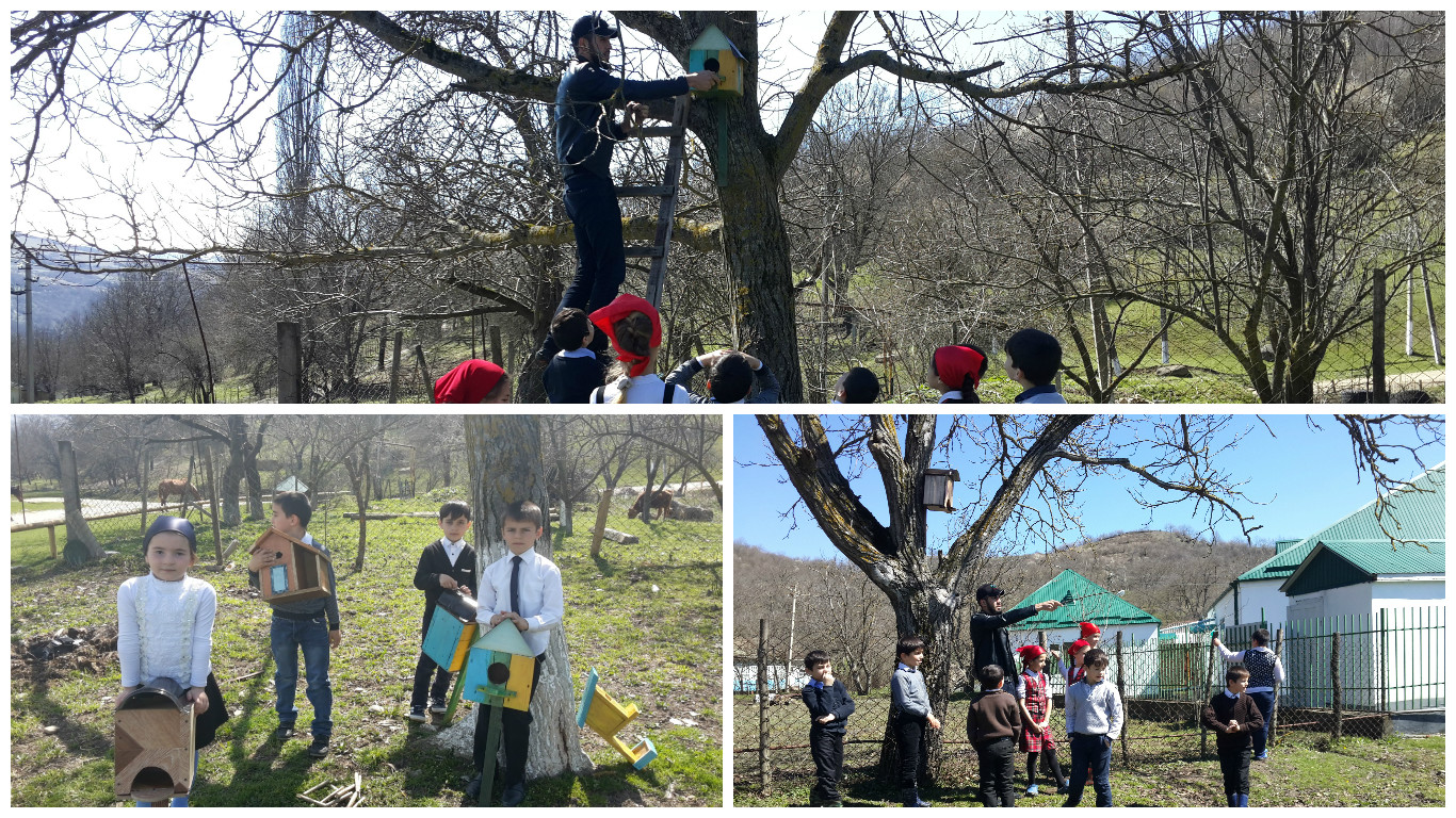 Воспитатель группы продленного дня – Мустапаев Аслан Халидович рассказывал о птицах, в каком домике птицам будет уютно жить, куда и как правильно вешать домики для птиц.