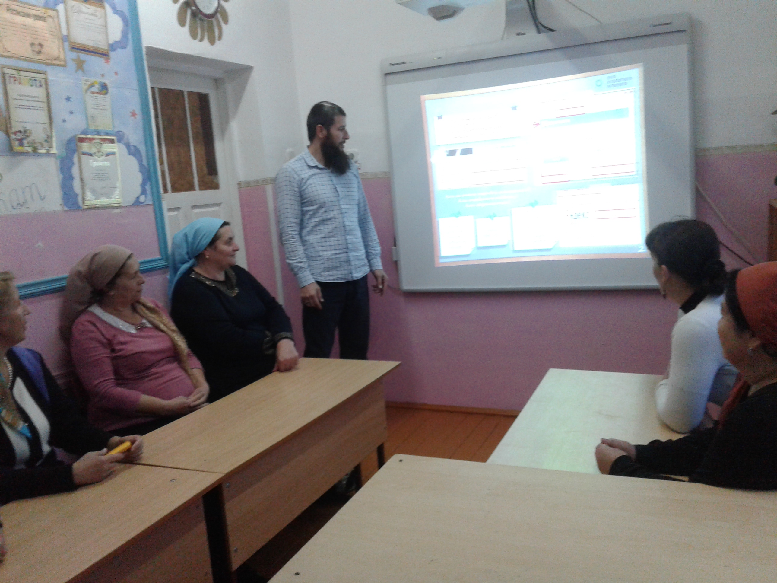 Под руководством учителя информатики Хажиевым А.К., в 5-11 классах совместно с родителями был организован урок безопасности в сети Интернет с просмотром презентаций и видеофильма.