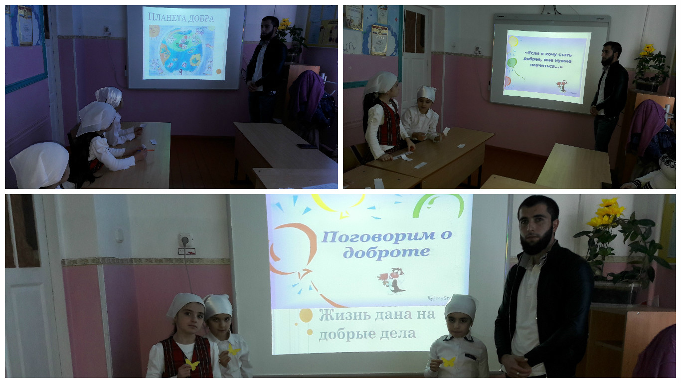 16.11.201616 ноября в 2 классе с классным руководителем Алархановым М.М., прошел урок на тему "Поговорим о доброте" с целью формирование нравственных ценностей: добра, милосердия, взаимопомощи.