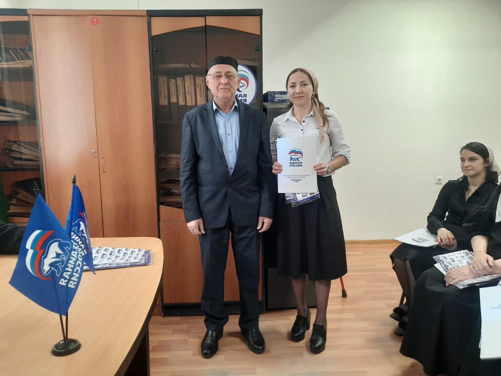 Руководитель Регионального исполнительного комитета партии «Единая Россия» А. А. Динаев наградил почетной грамотой заместителя директора по учебной работе МБОУ «Корен-Беноевская СШ» Аларханову Марху Махаевну за активную гражданскую позицию и большой вклад в развитие мобильного приложения «ВВЕРХ» и в связи с празднованием Международного женского дня.