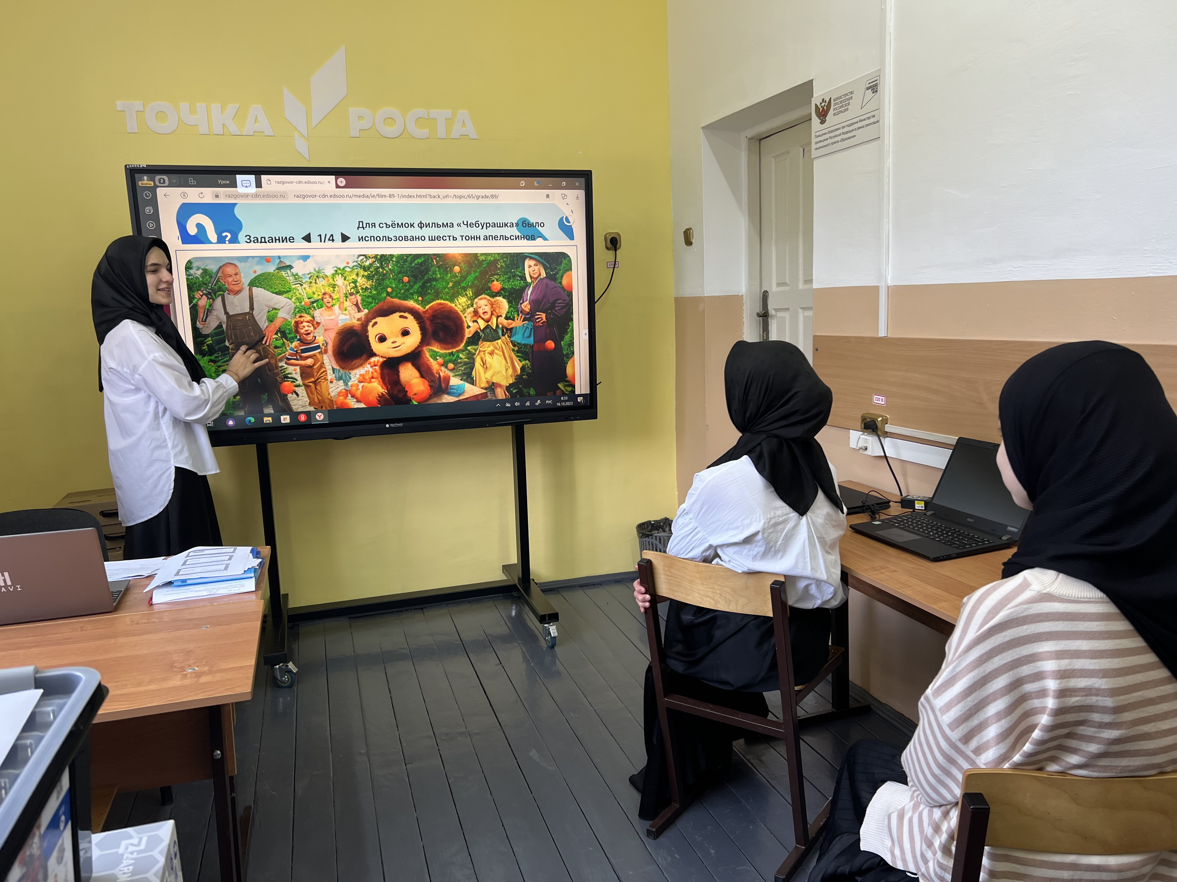 Занятие начиналось с общей беседы с обучающимися о любимых фильмах и мультфильмах, о том, почему кино в принципе интересно людям. Поддерживает интерес к заявленной теме занятия и просмотр видеообращения федерального спикера.
