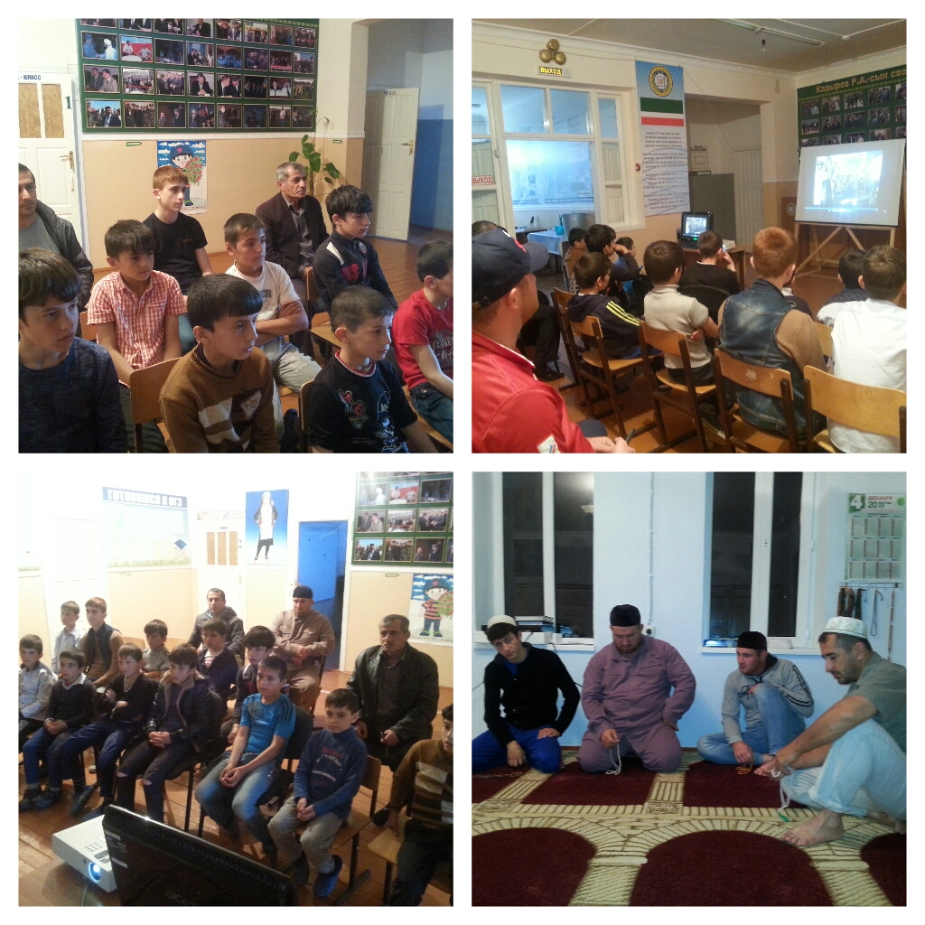 педагога ДНВ Абдулкадырова И.Ш., и учителя истории Селимханова Н.С., организовали просмотр художественных фильмов о ВОВ. Обучающиеся с удовольствием смотрят и обсуждаюткинофильмы. После просмотра кинофильма "Крепость" активисты ученического самоуправления приняли решение организовать чтение аята "Ясин". Многие обучающие читали "Ясин" и просили всевышнего Аллаха наградить наших земляков - защитников крепости, соразмерно их подвигу и отваге. Дала г1азот къобал дойла церан!