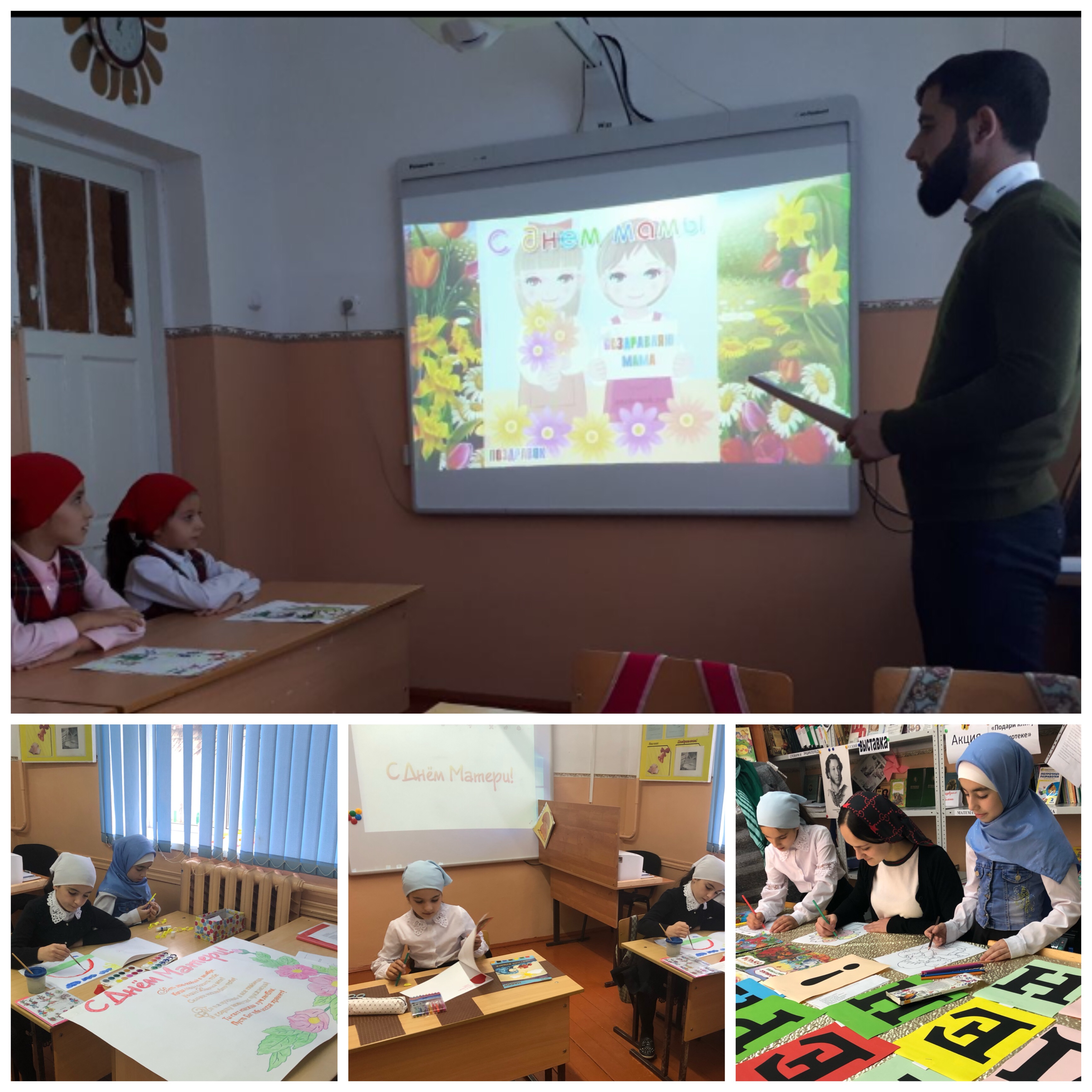 23.11.2018С целью развивать в детях чувства сопереживания, доброго сочувственного отношение к матери, воспитывать уважение материнского труда, любовь к матери с классным руководителем 4 класса проведен классный час посвященный дню Матери на тему «Самый важный и любимый человек».