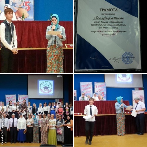 06.06.2015В 2014 – 2015 учебном году обучающиеся нашей школы посещали Республиканскую школу выходного дня для одаренных детей. По итогам года обучающиеся 8 – го класса Абдулкадиров Рамзан и Хасаев Райбек получили сертификаты об окончании школы по профилю математика. Администрация школы поздравляет Исаака и Райбека с достигнутыми результатами и выражает благодарность всему педагогическому коллективу РШВД в лице директора школы Мидаева Майрбека.